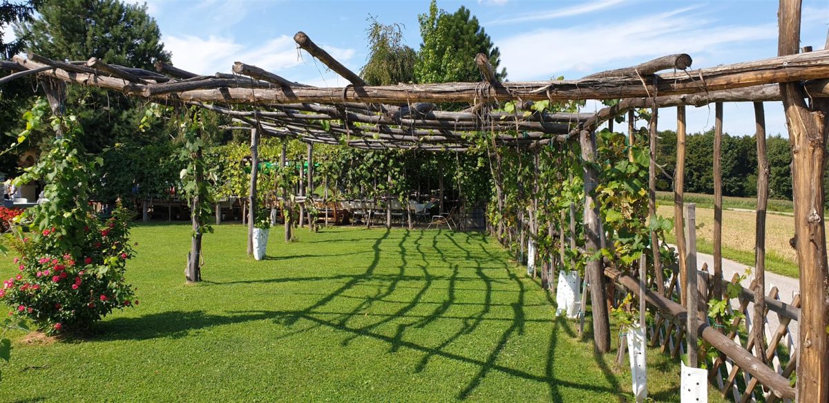 zunanji prostor z zelenico in brajdami ponuja priložnost za sprostitev in uživanje v